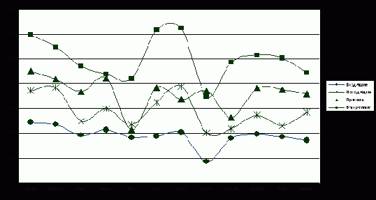 Рост количества приказов в течение 2000 года (6,3 %) вызван повышением доли рутинных вопросов, что указывает на то, что основная задача руководства предприятия – это поддержание уже существующего организационного порядка.