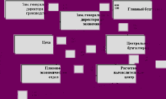 Из рисунка 2.12. видно, что связи между заместителями генерального директора по экономике и по производству достаточно налажены: движение потоков документов практически не затруднено. Однако, при передаче данных финансовому директору для формирования производственной программы и оперативного учета у директора по производству нет возможности обрабатывать их для предоставления в желаемом виде. Он не обладает дополнительным временем, необходимым для перегруппировки и выборки из всей имеющейся информации той части, необходимой для предоставления заместителю генерального директора по экономике. Данные функции также не могут быть возложены на производственно-сбытовой отдел по причине отсутствия всей необходимой информации и реального времени для выполнения данных функций. В этой ситуации необходимо рассмотреть вариант, согласно которому данные функции следует передать производственно-сбытовому отделу, который, в свою очередь, недостающую информацию будет получать у прямого начальника и контактировать с расчетно-вычислительным центром. В функции расчетно-вычислительного центра входит разработка соответствующих форм предоставления внутренней документации, а также их составление. Несмотря на то, что фактически между заместителем генерального директора по производству и расчетно-вычислительным центром связь налажена достаточно хорошо, работникам РВЦ не хватает реального времени для выполнения поручений заместителя генерального директора по производству. В связи с этим рекомендуется расширить штат сотрудников расчетно-вычислительного центра с закреплением за каждым из них определенного сектора подразделений, с которыми он будет непосредственно контактировать.